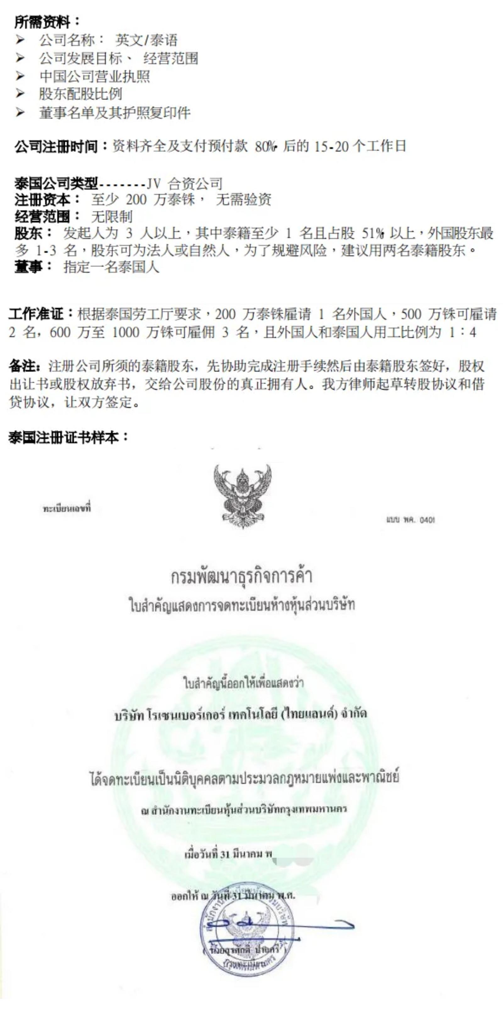 泰国公司注册说明书
